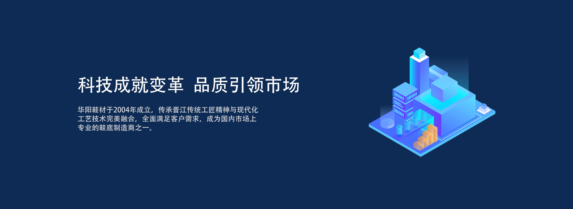 華陽鞋材于2004年成立,傳承晉江傳統工匠精神與現代化工藝技術完美融合,全面滿足客戶需求,成為國內市場上專業的鞋底制造商之一。多年來,華陽鞋材自主研發及引進最先進智能生產設備,致力于生產EVA一次(IP)成型鞋底、EVA二次(MD)成型鞋底、TPR鞋底、RB(橡膠)鞋底,TPU鞋底及配件及底材組合。